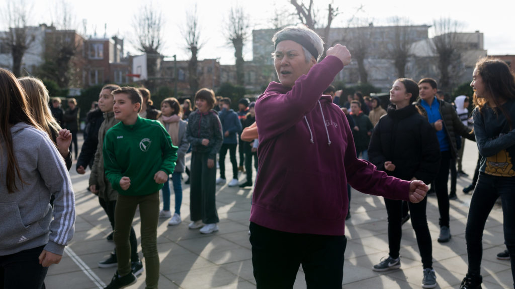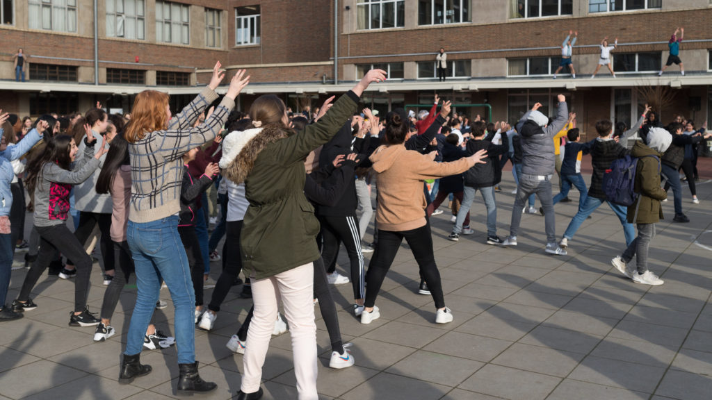 Ze waren, zo bleek, al een tijdje op geheime missie. De vakken Frans en LO, u leest het goed, hadden de armen én benen in elkaar geslagen: mevr. Bervoets, Wauters en Dendooven en dhr. Moeremans zouden Le Coach van Soprano niet alleen als Frans chanson lezen, beluisteren en ontleden, maar het nummer zou ook gedanst worden tijdens LO.