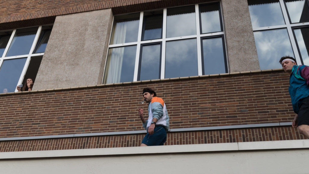 … er muziek klinkt op de speelplaats; de geluidsinstallatie met mijnheer ‘Joery’ Verpoorten achter de knoppen is in stelling gebracht, en er is zowaar beweging boven op de streng verboden luifel. Chrysostomos? Dat was toch een paar weken geleden ?