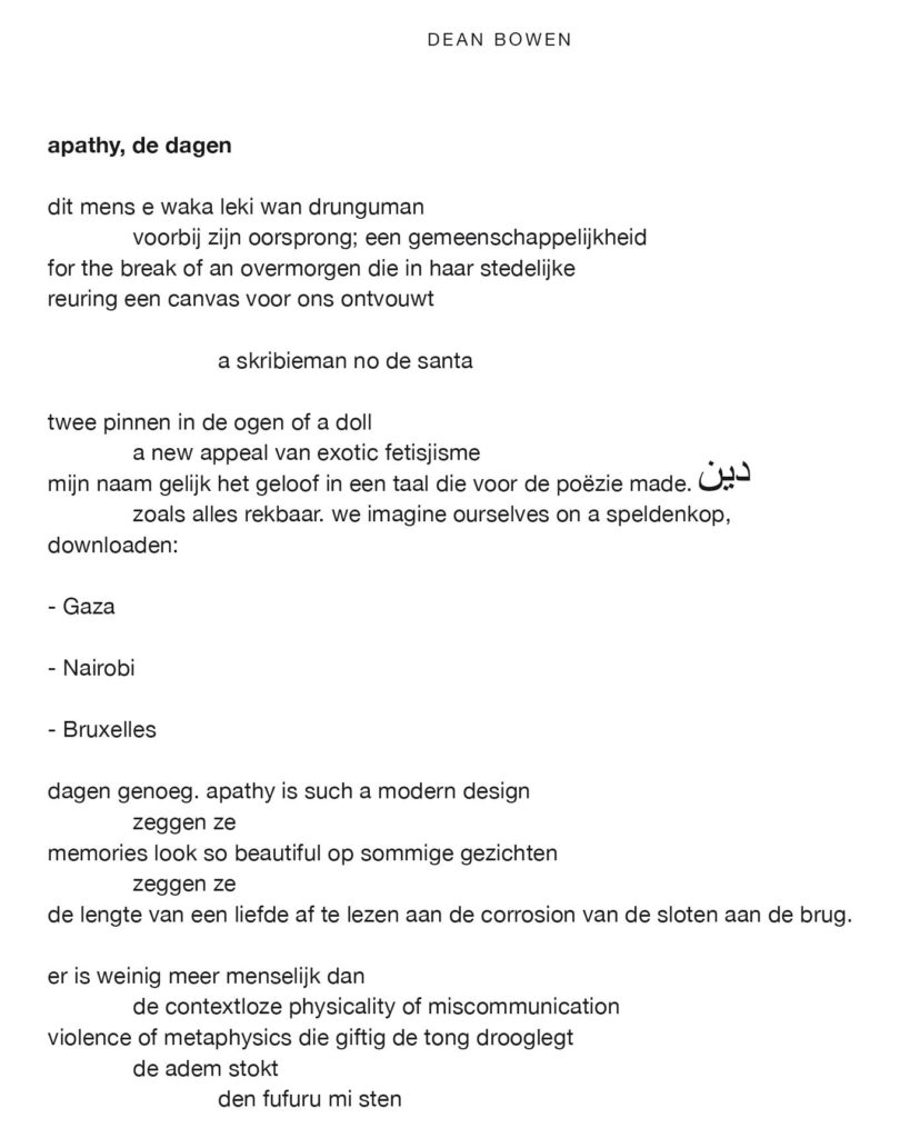 Het begon met deze videopdracht waarin Dean Bowen aan leerlingen vraagt om met één van de drie gedichten aan de slag te gaan die als poëziegeschenk bij de 2020 editie van de poëzieweek hoorden. Naast het gedicht van Dean Bowen zelf waren dat een gedicht van Carmien Michels en Maud Van Hauwaert.