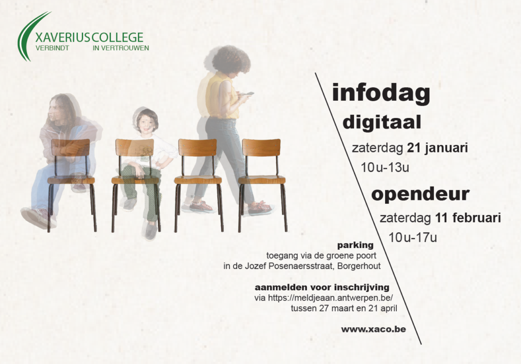 Op zaterdag 11 februari 2023 zetten we de deuren van de kleuterschool, de lagere school en het middelbaar open voor een ontdekkingstocht door de gebouwen aan de Collegelaan. Het geeft een goed beeld van het collegeleven, zeker voor jongeren die de stap naar het middelbaar onderwijs willen zetten, maar ook voor ouders van kleuters en/of lagereschoolkinderen. Ook voor geïnteresseerden in hogere jaren van het ASO kan deze eerste ontmoeting interessant zijn.
