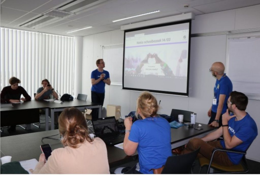 Hierna werd aan de hand van een quiz meer uitleg gegeven over het bedrijf zelf en over hoe het is om bij Nokia te werken. Als bedrijf doen ze veel meer dan gsm’s maken, ingenieurs van Nokia hebben Nobelprijzen gewonnen en belangrijke uitvindingen zoals zonnepanelen komen van hen.