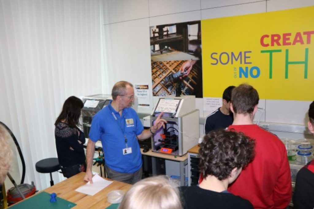 Tenslotte kregen we nog een rondleiding en zagen we hoe teams samenwerkten om problemen op te lossen. We mochten ook eens rondkijken in ‘de garage’, een plaats waar mensen kunnen samenkomen om te werken aan een project of iets kunnen bouwen met al het materiaal dat daar voorhanden is. Soms was het wat moeilijk om te volgen wanneer uitgelegd werd hoe iets precies werkte maar wel zeer interessant om te zien waar je kan terechtkomen na een ingenieursopleiding!