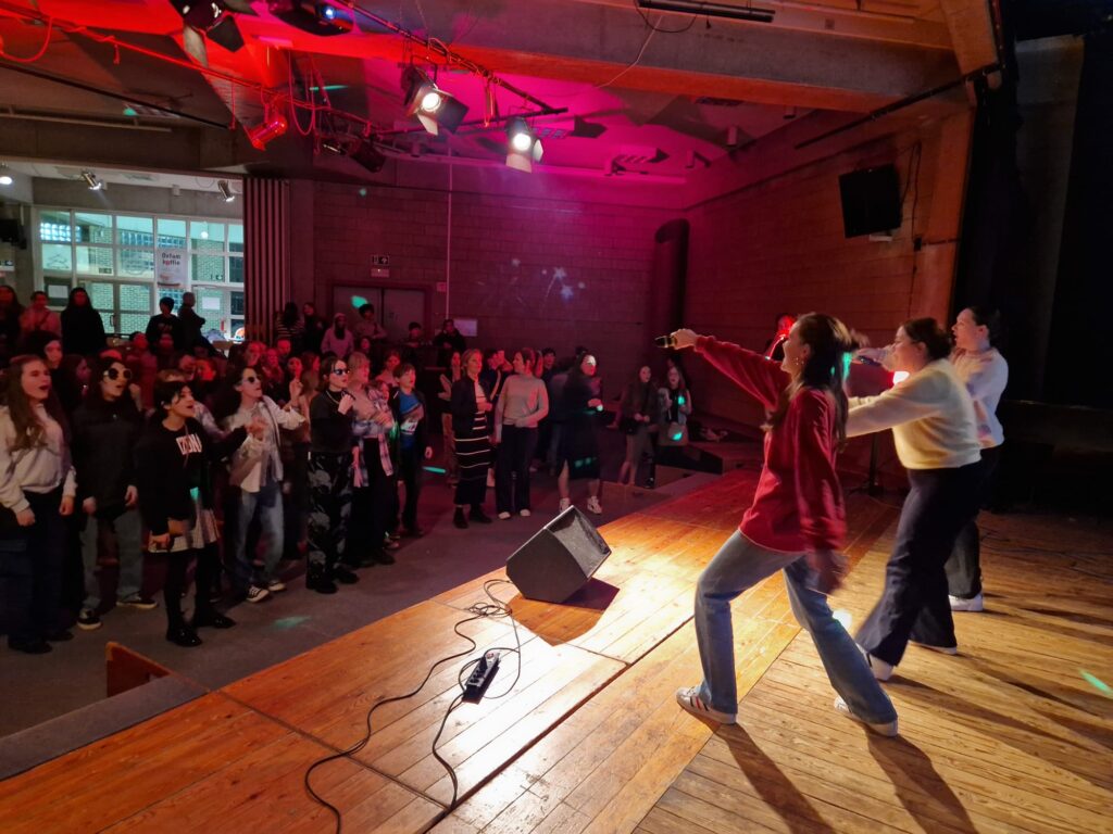 We kijken en luisteren niet alleen: sommige klasgroepen spelen toneel, anderen boksen een dansvoorstelling in elkaar, nog anderen zetten hun muzikale beentje voor in 1, 2, 3… piano!, het jaarlijkse aperitiefconcert in januari.