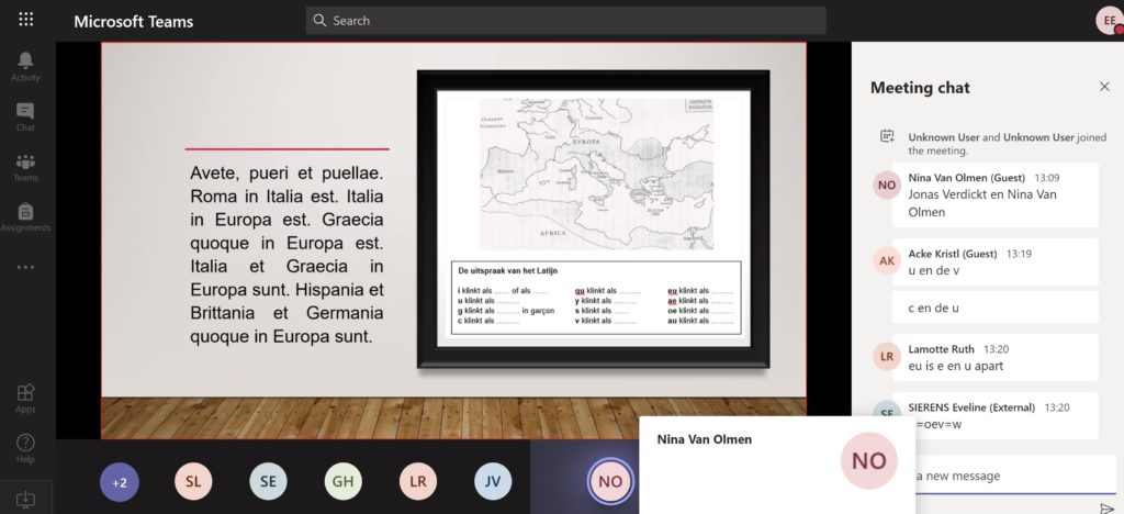Technisch was het soms wat zoeken naar de juiste camera- of microfooninstellingen en soms liepen de wachttijden wegens te veel belangstelling op hetzelfde moment wat op maar met wat geduld en nog eens terug te proberen lukte het iedereen om een gesprek te hebben met leerlingen, leerkrachten, ouders of het directieteam. En heel wat (toekomstige?) leerlingen hebben al kunnen genieten van Magister Grassactus en magistra Oliveria en hun spannende les Latijn waar ze op zoek gingen naar … .