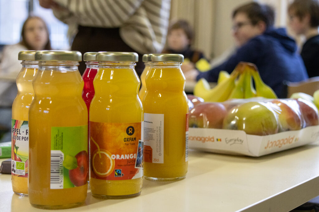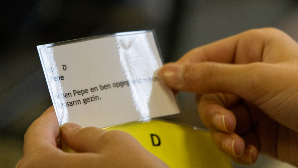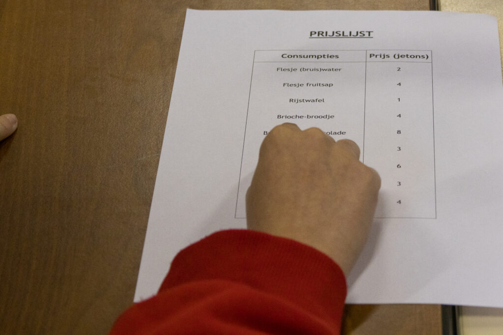 Bij het binnenkomen kreeg iedereen een bingokaartje met daarop een nummer. Het ontbijtbuffet, sinaasappelsap en chocolade inbegrepen, stond klaar maar moest nog even wachten. Eerst verplaatste de klas zich naar Venezuela en kreeg elke leerling een Venezolaanse naam, beroep, achtergrond én loon. Al gauw bleek dat Carlos, Juanita, Paco en Eduardo niet allemaal evenveel verdienden. En omdat met het verdiende (?) loon het ontbijt gekocht kon worden, werd het snel duidelijk dat sommige met een indigestie, anderen met honger van tafel zouden gaan.